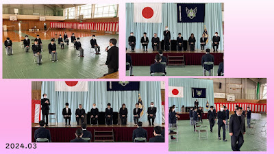 3/21(木)、3学期の終業式と離任式が行われました。春休みを過ぎると入学式が待っています。先輩として新しい仲間をあたたかく迎えてほしいと思います。